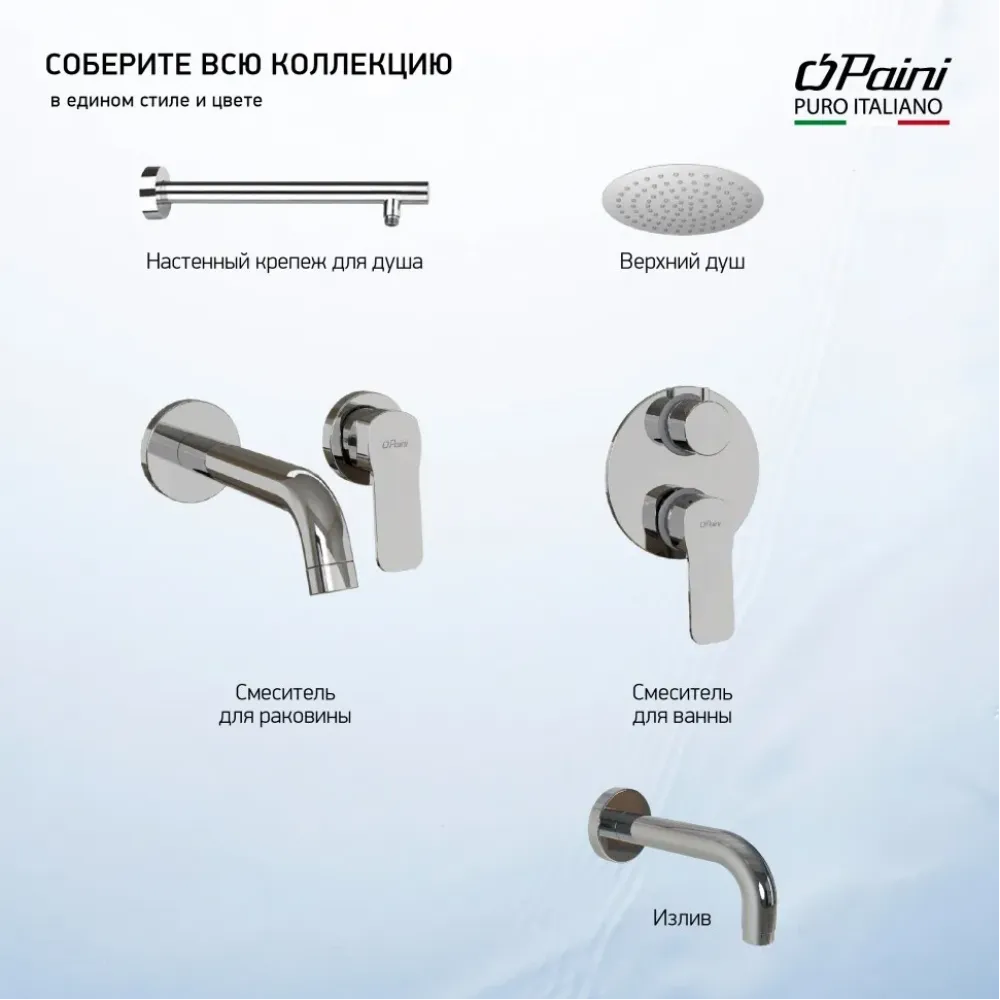 Встраиваемые смесители PAINI поставляются в полном сборе - внутренняя и внешняя часть. Геометрия смесителей Viva Style органично дополнит интерьер в стиле фьюжн, классика, хай-тек, а также прекрасно подойдет для ванной в португальском стиле оформления.