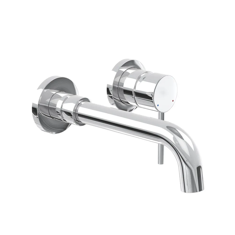 Раздельный смеситель из стены, с удобной поворотной ручкой для регулировки температуры выходящей воды. Выполнен в современном стиле, а так же максимально универсален, благодаря цвету исполнения - хром