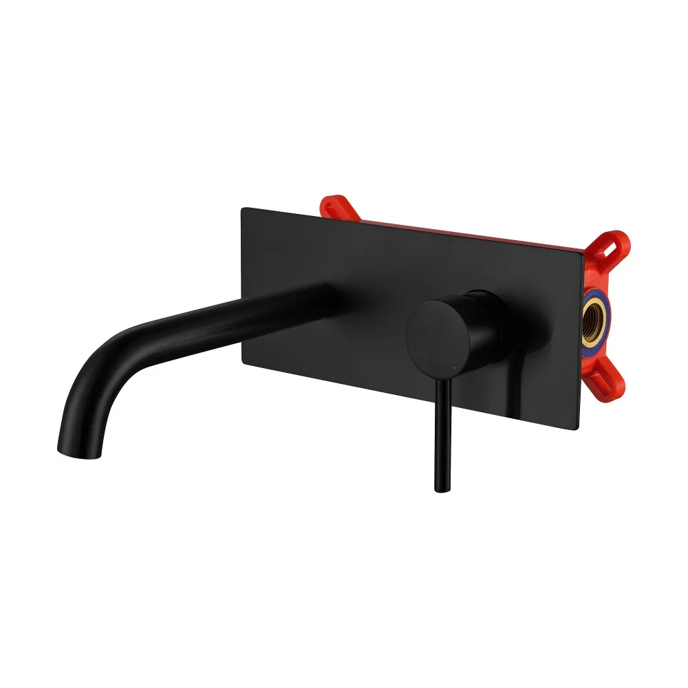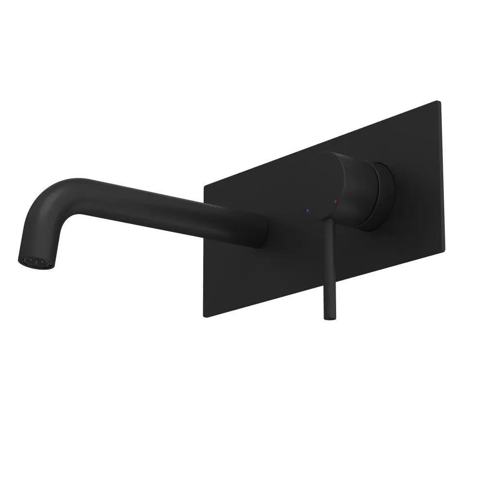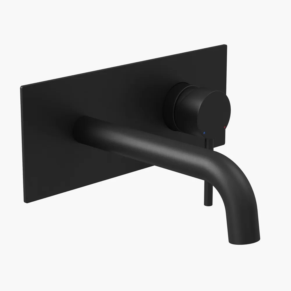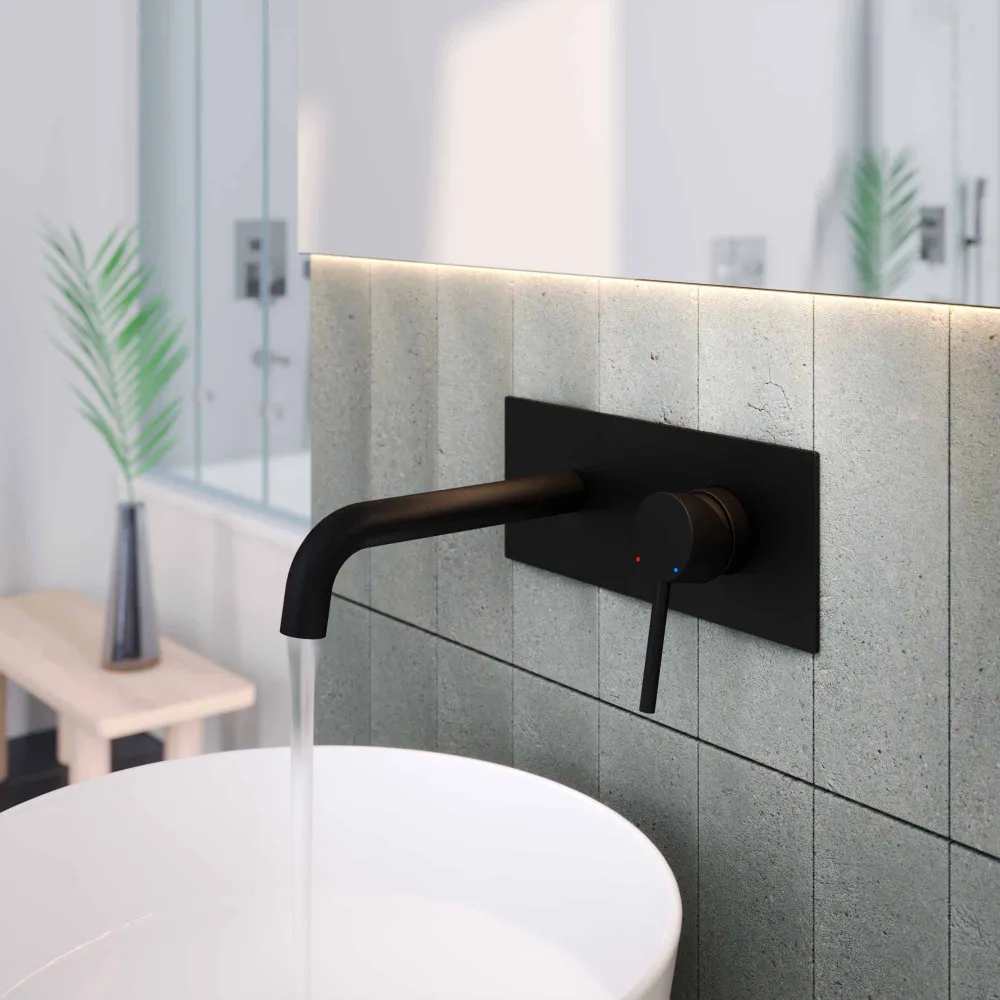Смеситель из стены на планке, с удобной поворотной ручкой для регулировки температуры выходящей воды. Выполнен в современном стиле, цвет матовый черный, максимально дополнит дизайн пространства в ванной комнате