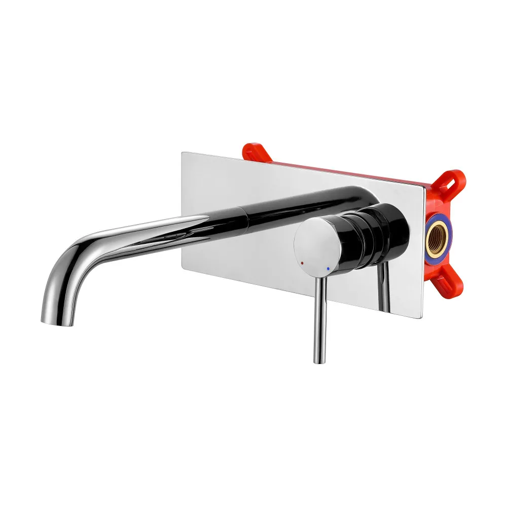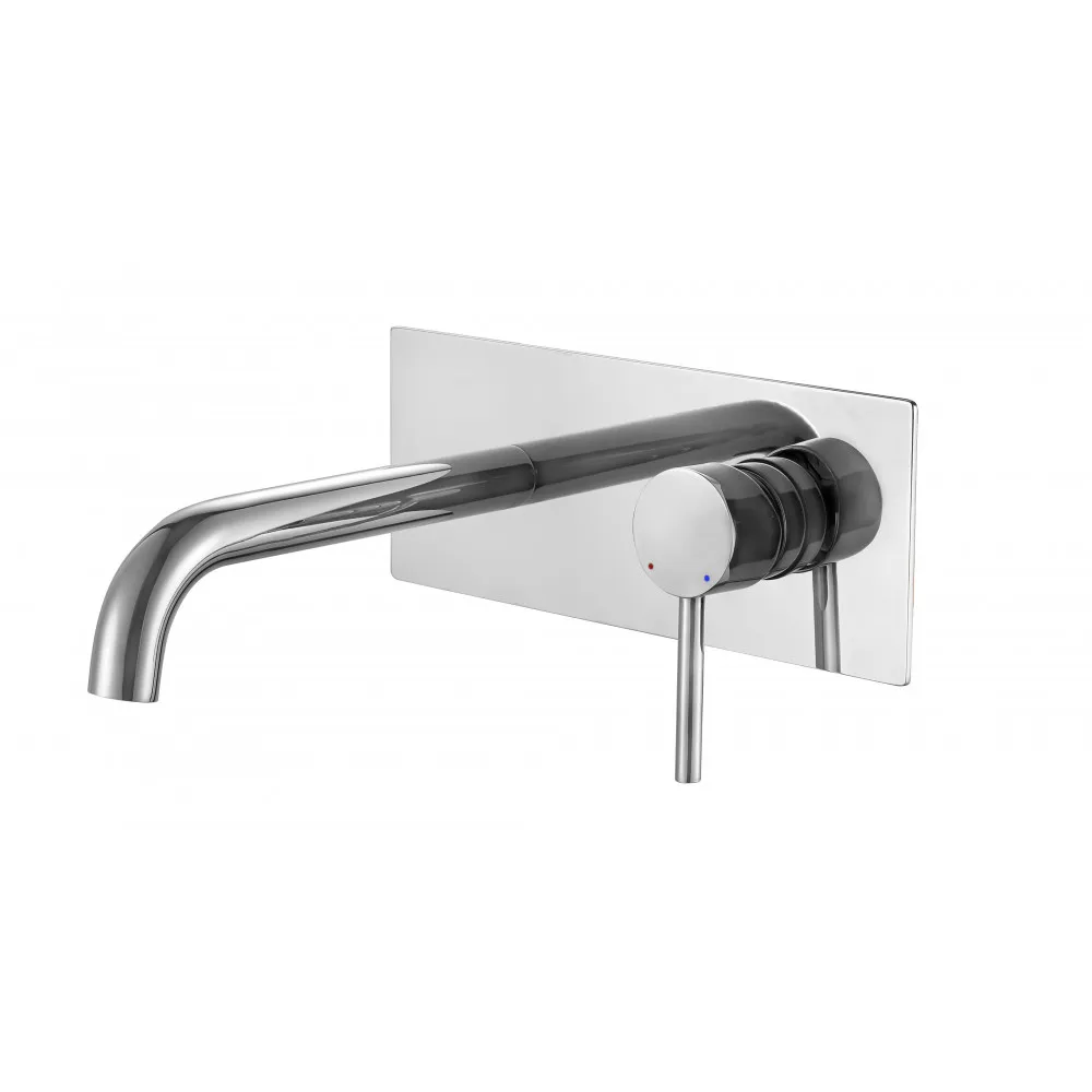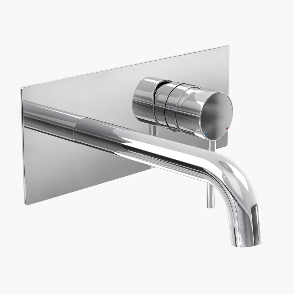 Смеситель из стены на планке, с удобной поворотной ручкой для регулировки температуры выходящей воды. Выполнен в современном стиле, а так же максимально универсален, благодаря цвету исполнения - хром