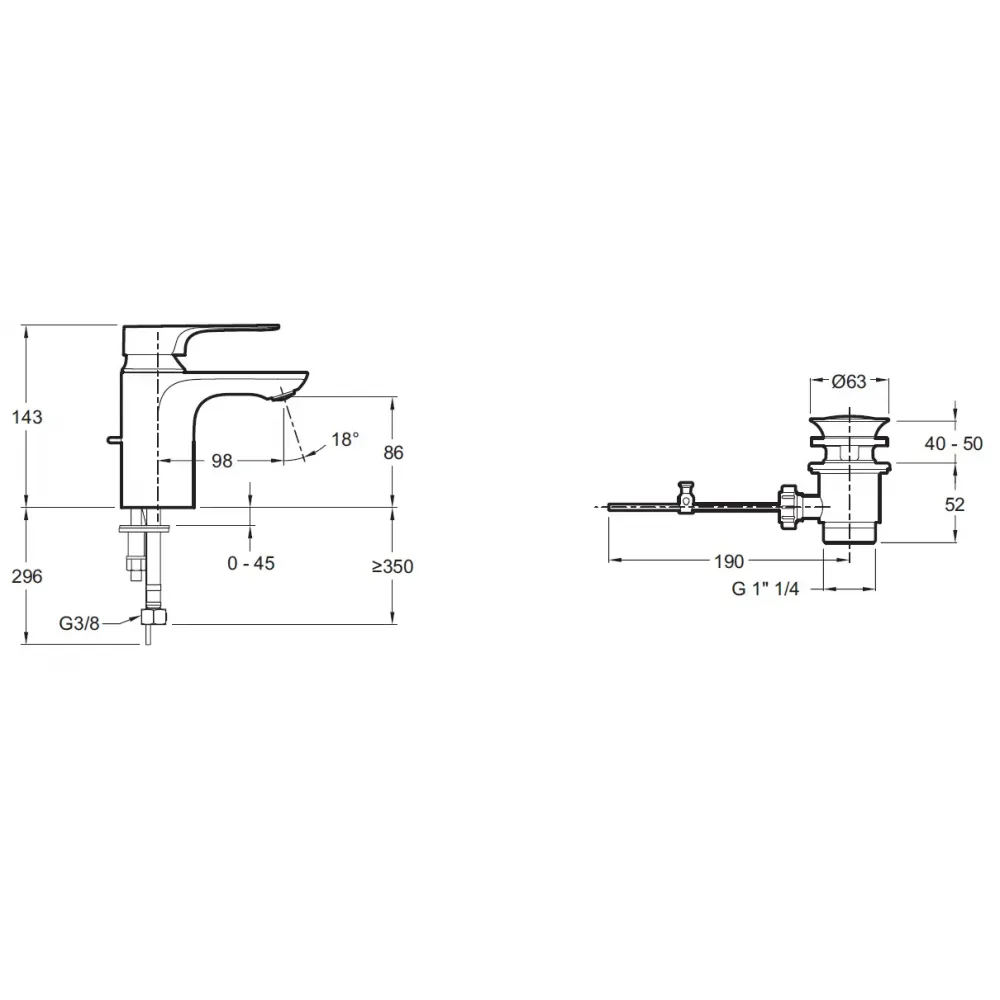 Высота под изливом: 143 мм