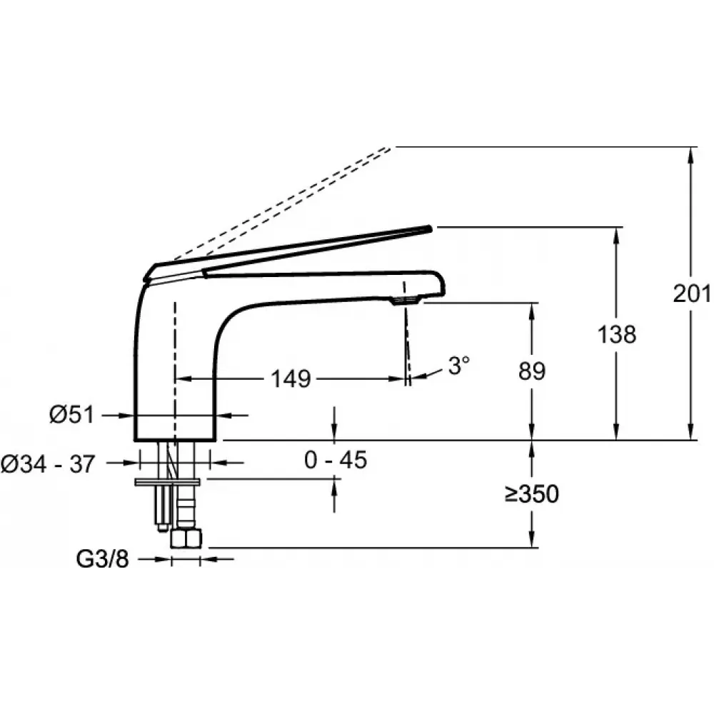 Однорычажный смеситель для умывальника с гибкой подводкой.