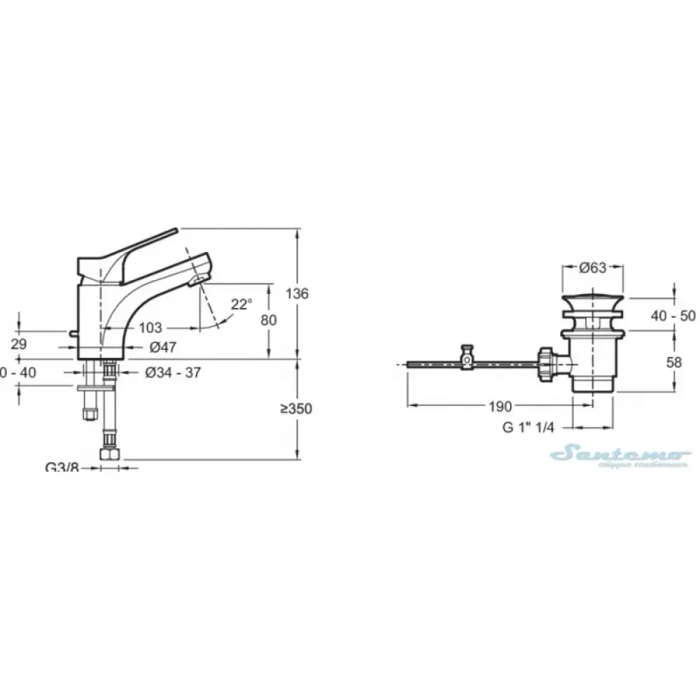 | С донным клапаномДа | С термостатомНет | Управление подачей водыоднорычажное |