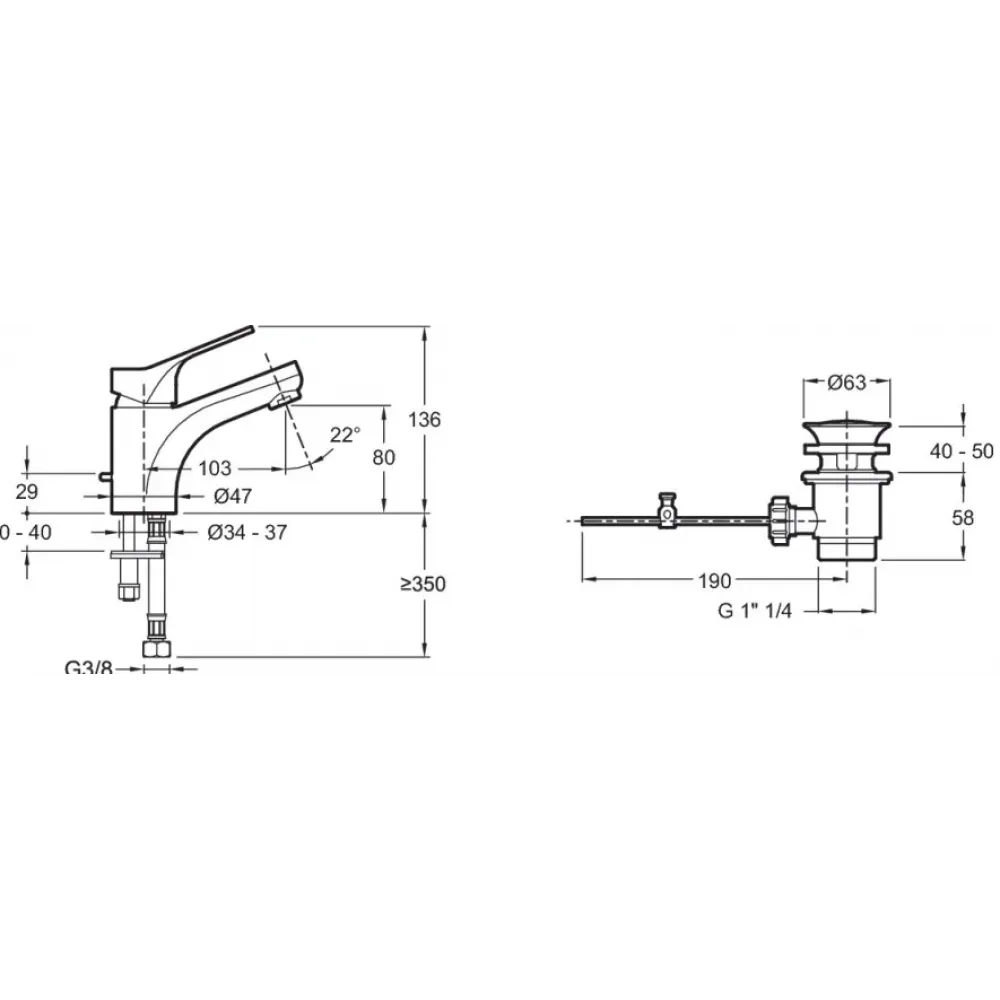 Технические характеристики Смеситель для умывальника Brive рычаг донного клапана сбоку, неповоротный излив, с донным клапаном E75760-CP Jacob Delafon