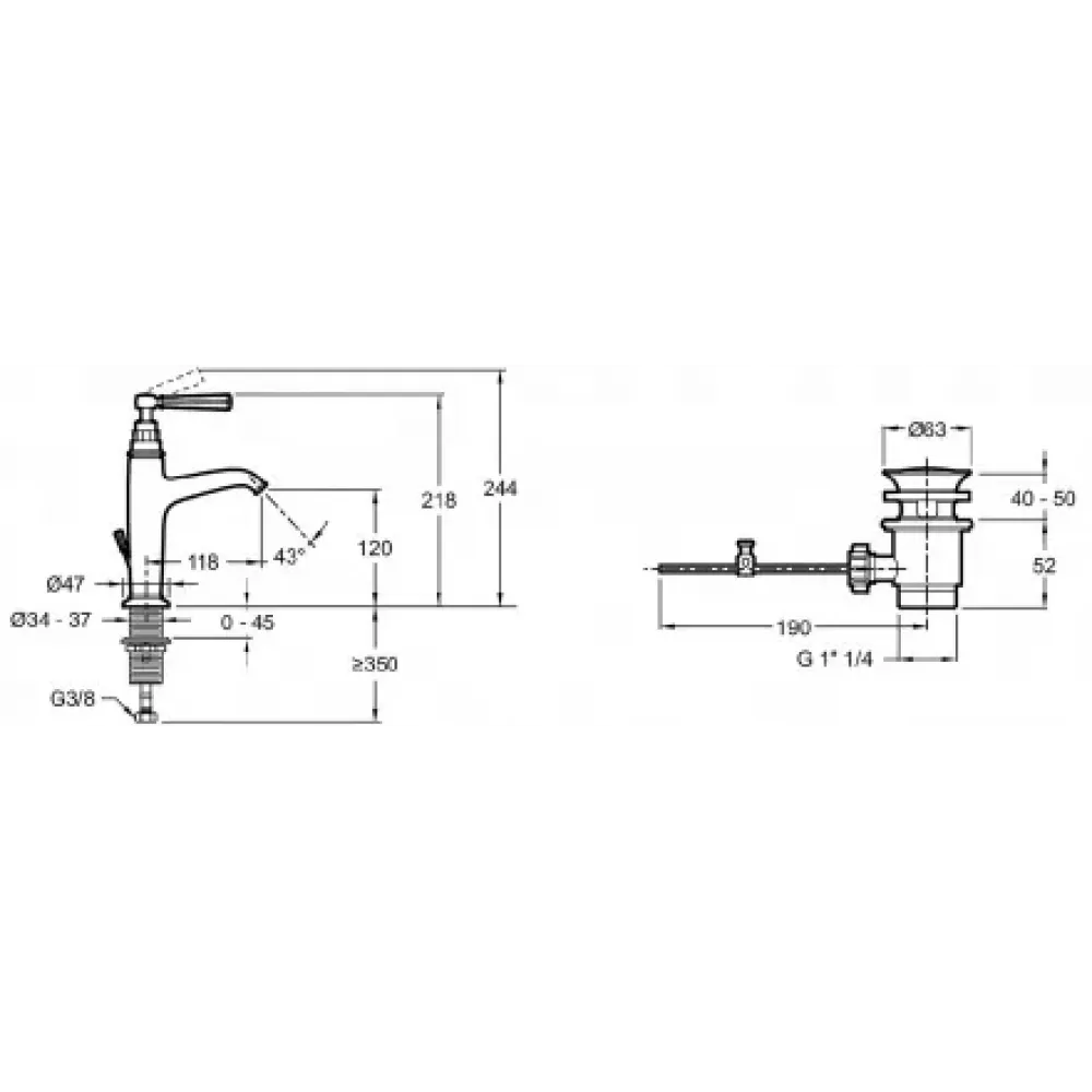 Технические характеристики Смеситель для умывальника Cleo неповоротный излив, с донным клапаном E24307-CP Jacob Delafon