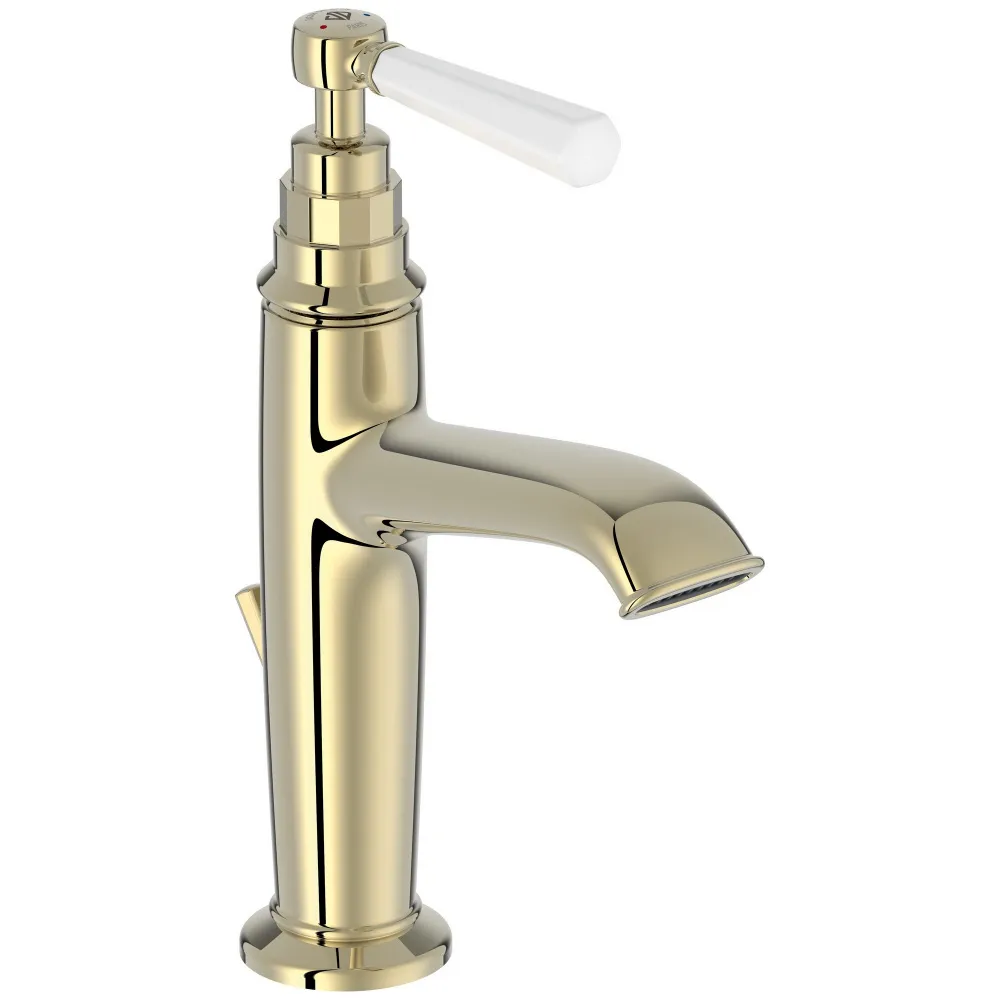Cleo, смеситель для умывальника, неповоротный излив, золото, с донным клапаном, арт. E24307-BGG, Jacob Delafon