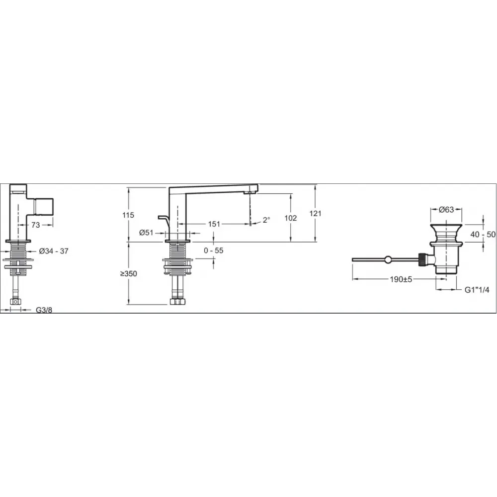 Технические характеристики Смеситель для умывальника Composed излив 151 мм, неповоротный излив, с донным клапаном E73050-CP Jacob Delafon