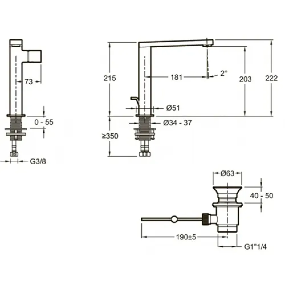 Технические характеристики Смеситель для умывальника Composed излив 181 мм, неповоротный излив, с донным клапаном E73159-CP Jacob Delafon