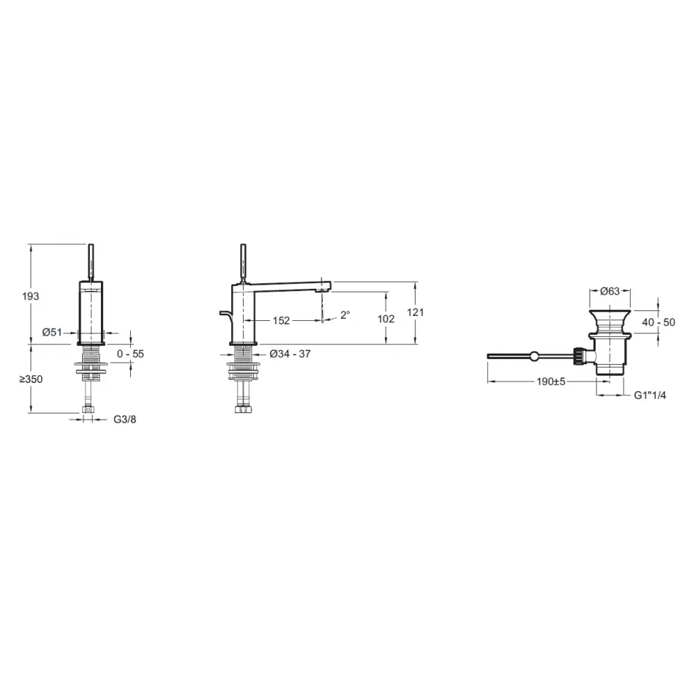 Технические характеристики Смеситель для умывальника Composed титан, высота излива 193 мм, неповоротный излив, с донным клапаном E73158-TT Jacob Delafon
