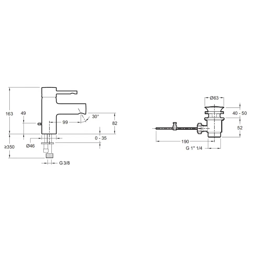 Технические характеристики Смеситель для умывальника Cuff излив 99мм, неповоротный излив, с донным клапаном, термостат E37041-CP Jacob Delafon