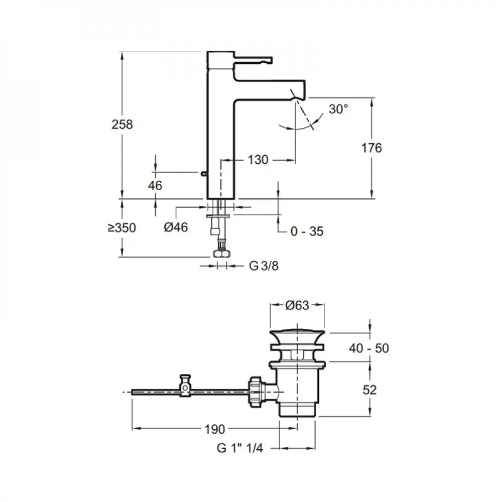Технические характеристики Смеситель для умывальника Cuff неповоротный излив, с донным клапаном E37303-CP Jacob Delafon