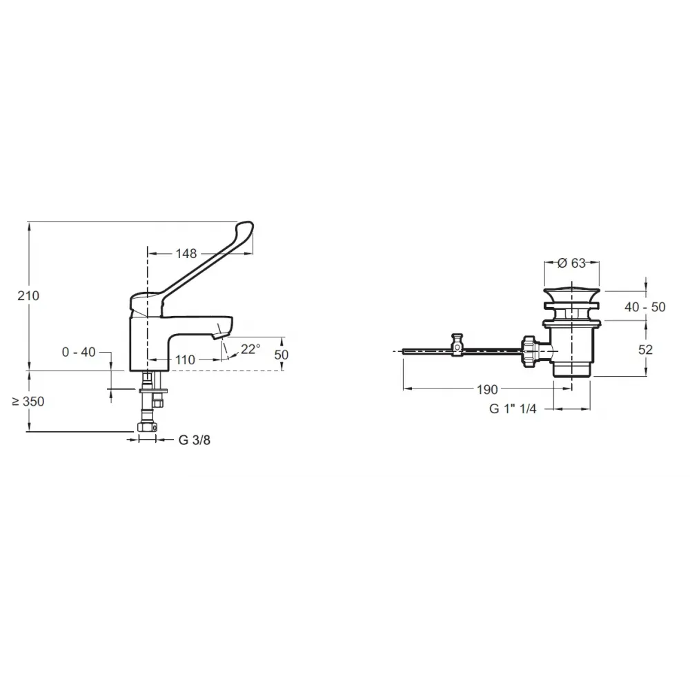 Технические характеристики Смеситель для умывальника Easy излив 110 мм, неповоротный излив, с донным клапаном, холодный старт E16024-4-CP Jacob Delafon