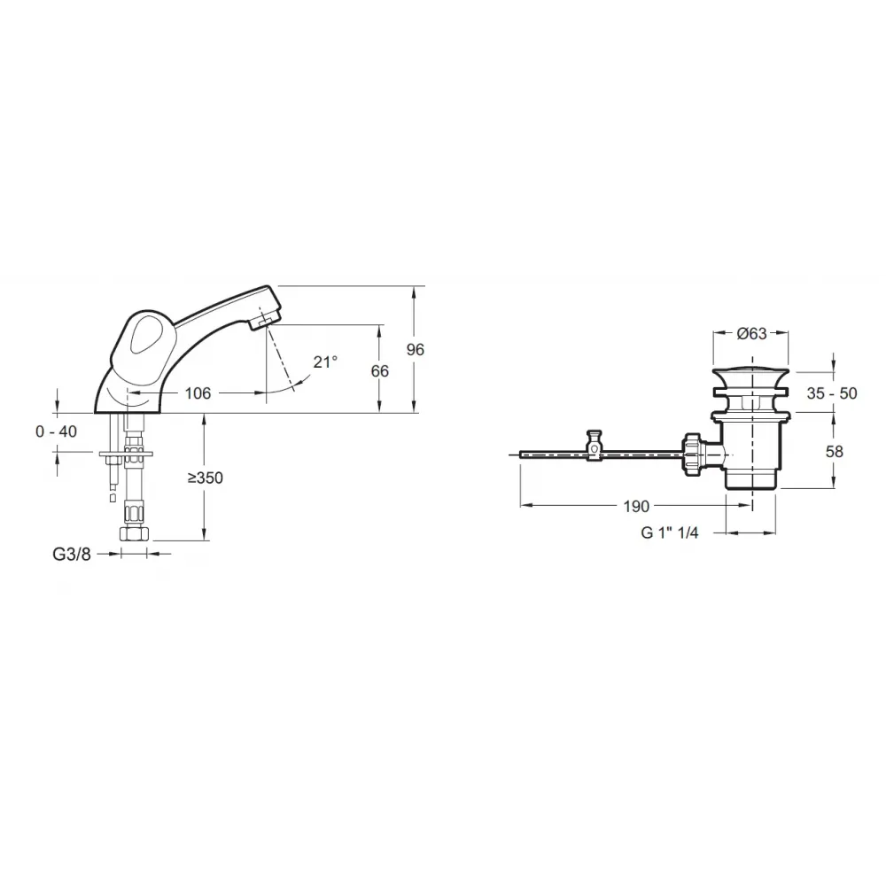 Длина излива: 106 мм