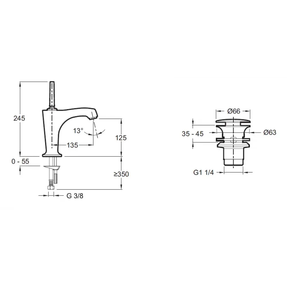 Высота излива, см 12,5