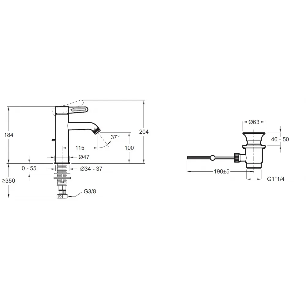 Технические характеристики Смеситель для умывальника Nouvelle Vague матовый черный, антикальк, чёрный цвет, неповоротный излив, с донным клапаном E78335-BLV Jacob Delafon