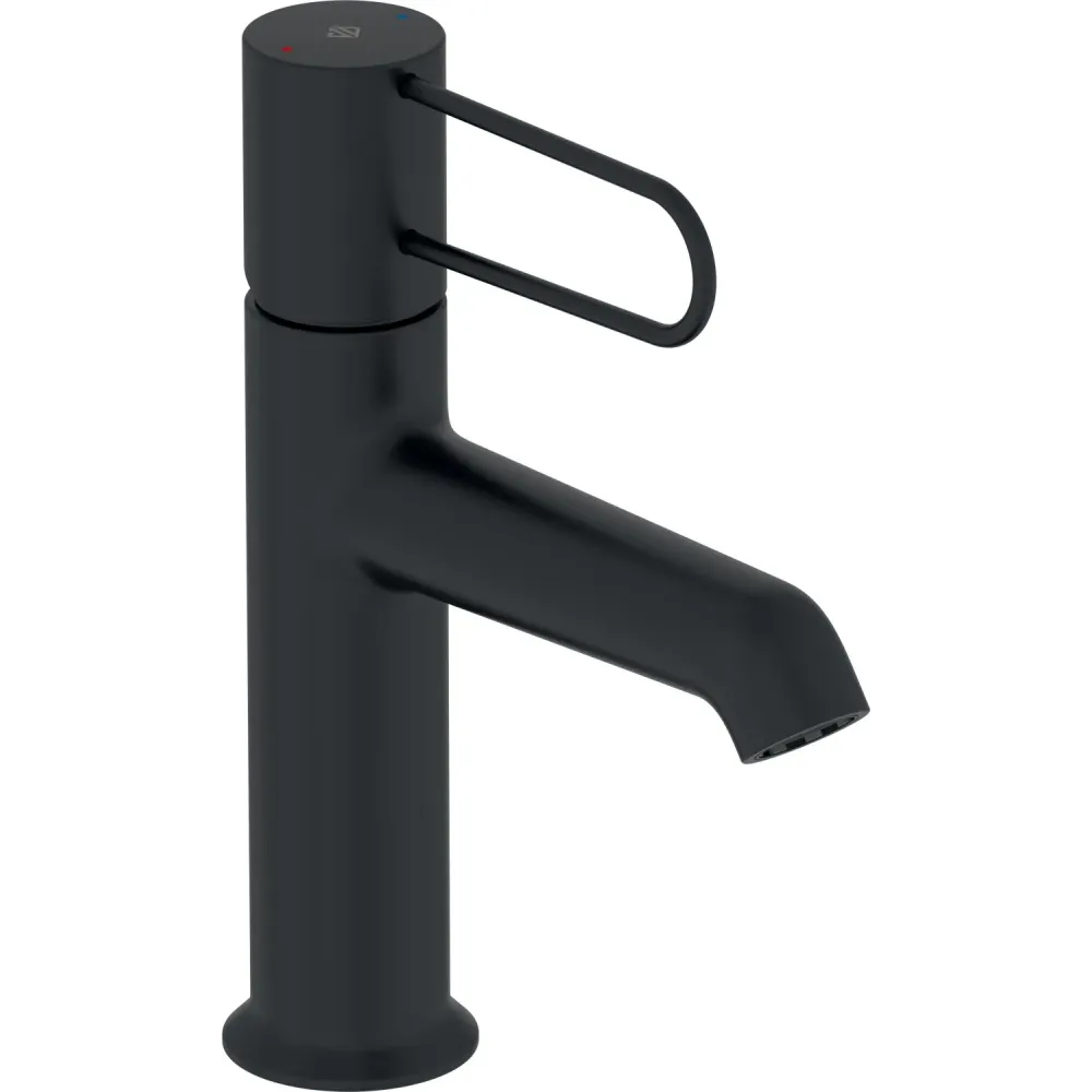 Odeon Rive Gauche, смеситель для умывальника, неповоротный излив, чёрный цвет, без донного клапана, черная ручка, арт. E21029-BL-BL, Jacob Delafon