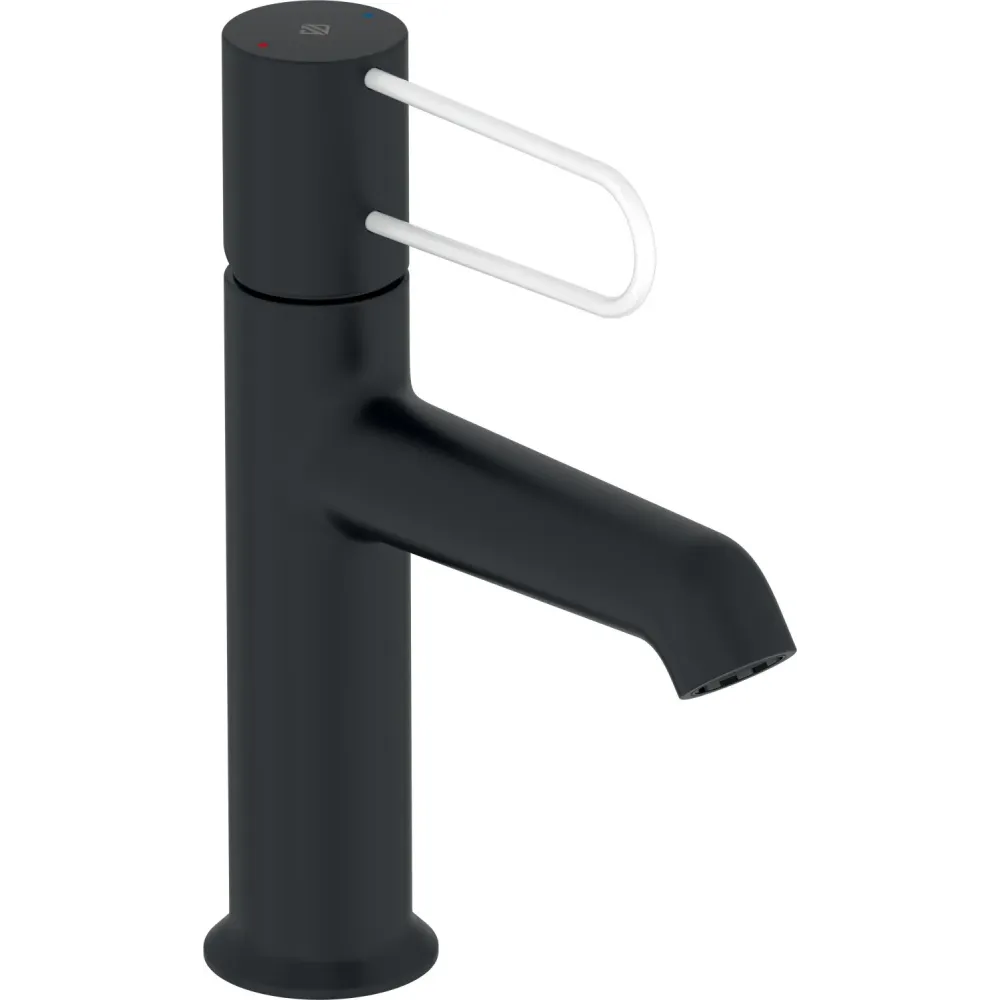 Смеситель для умывальника Odeon Rive Gauche ручка белая, неповоротный излив, чёрный цвет, с донным клапаном E21028-00-BL Jacob Delafon