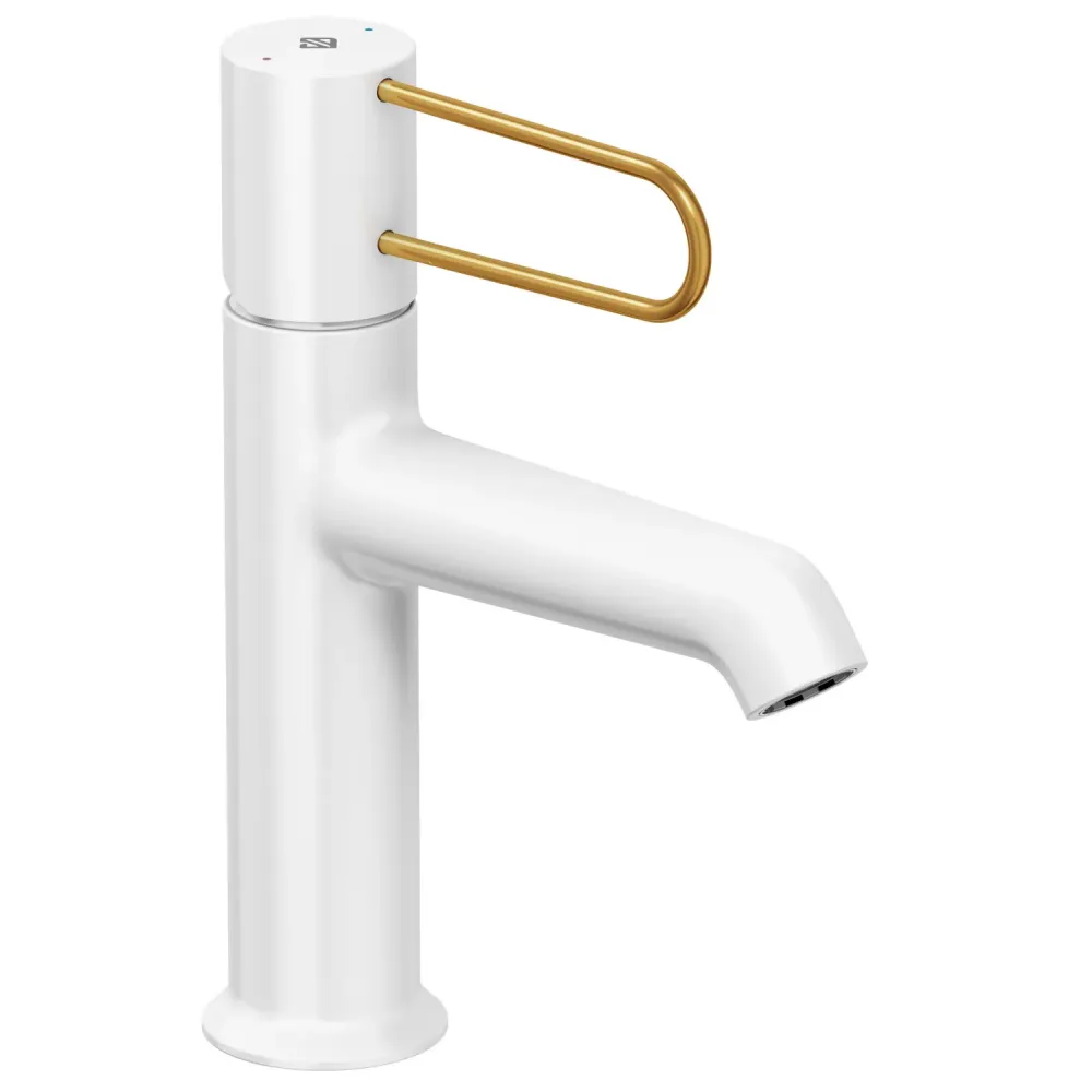 Смеситель для умывальника Odeon Rive Gauche ручка золото, неповоротный излив, белый цвет, с донным клапаном E21028-GLD-00 Jacob Delafon