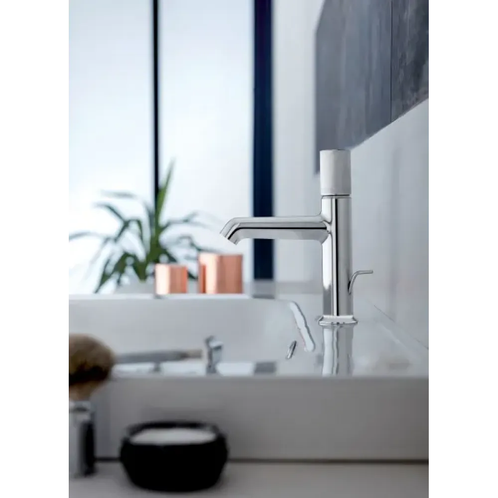 Cмеситель для раковины с донным клапаном в комплекте.