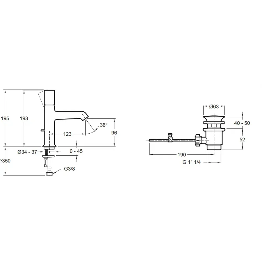Технические характеристики Смеситель для умывальника Rivoli неповоротный излив, с донным клапаном E24323-CP Jacob Delafon