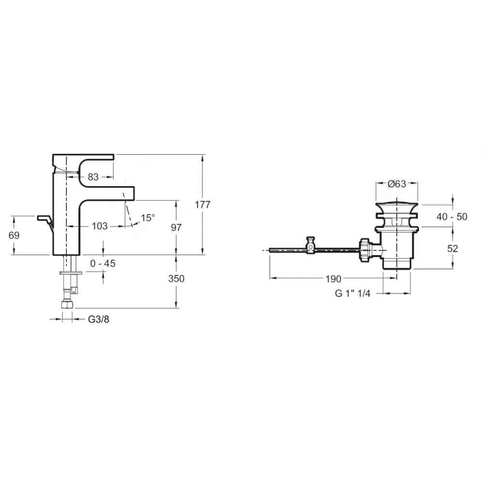 Технические характеристики Смеситель для умывальника Strayt неповоротный излив, с донным клапаном E37327-CP Jacob Delafon