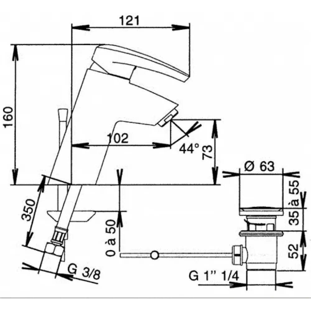 Технические характеристики Смеситель для умывальника Tea неповоротный излив, с донным клапаном E72600-CP Jacob Delafon