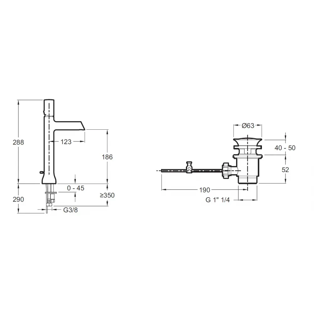Технические характеристики Смеситель для умывальника Toobi высота 28,8 см, неповоротный излив, с донным клапаном E8990-CP Jacob Delafon