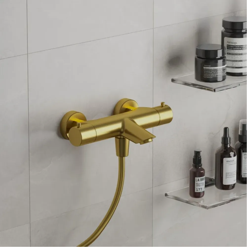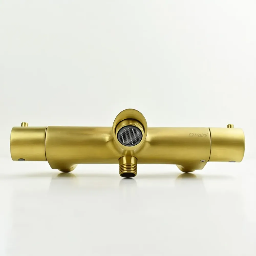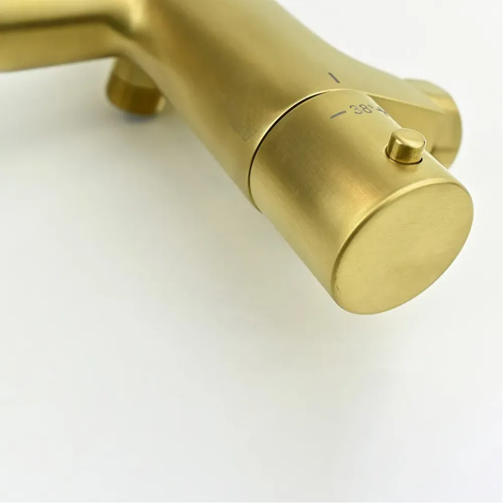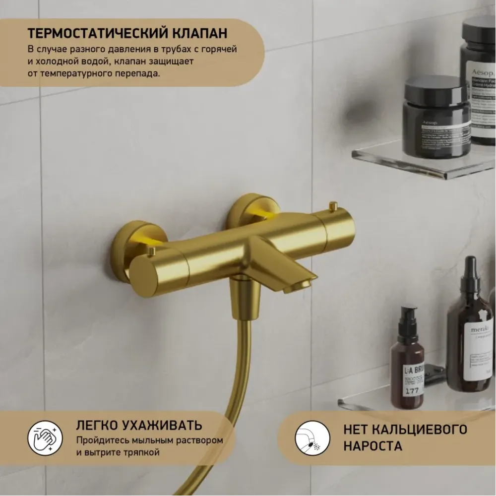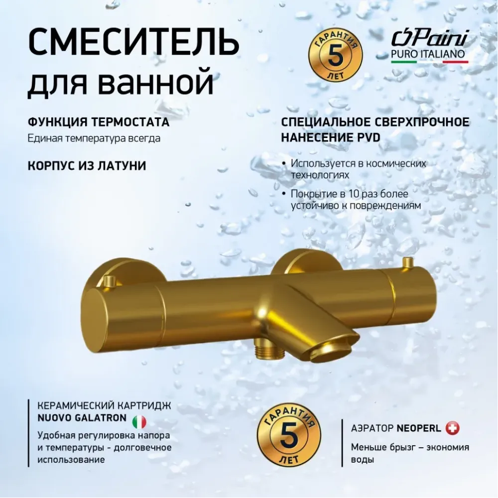 | Тип изделиясмеситель для ванны | Тип управления клавишейтермостат | Цветбрашированное золото (PJ) |