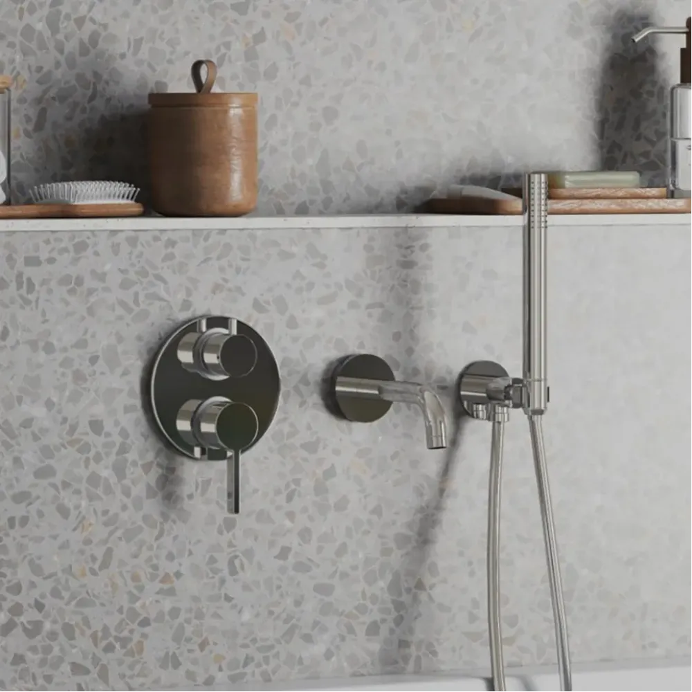 Встраиваемый смеситель для ванны и душа новой коллекции Brera сочетает в себе совершенные технологии и неповторимый стиль, оставляя на виду только самое важное. Данный смеситель позволяет распределить поток воды на два выхода и подключить несколько устройств, например, верхний душ и ручную лейку. Встраиваемые смесители PAINI поставляются в полном сборе - внутренняя и внешняя часть.