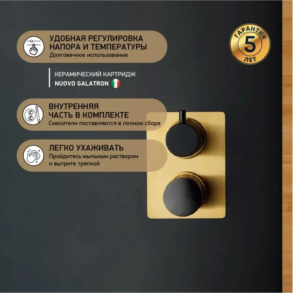 - Сверхпрочное покрытие PVD делает изделие в 10 раз более устойчивым к царапинам и другим повреждениям (для цвета черный PZ и брашированное золото PJ). Керамический картридж Nuovo Galatron (Италия) увеличивает срок комфортного использования.