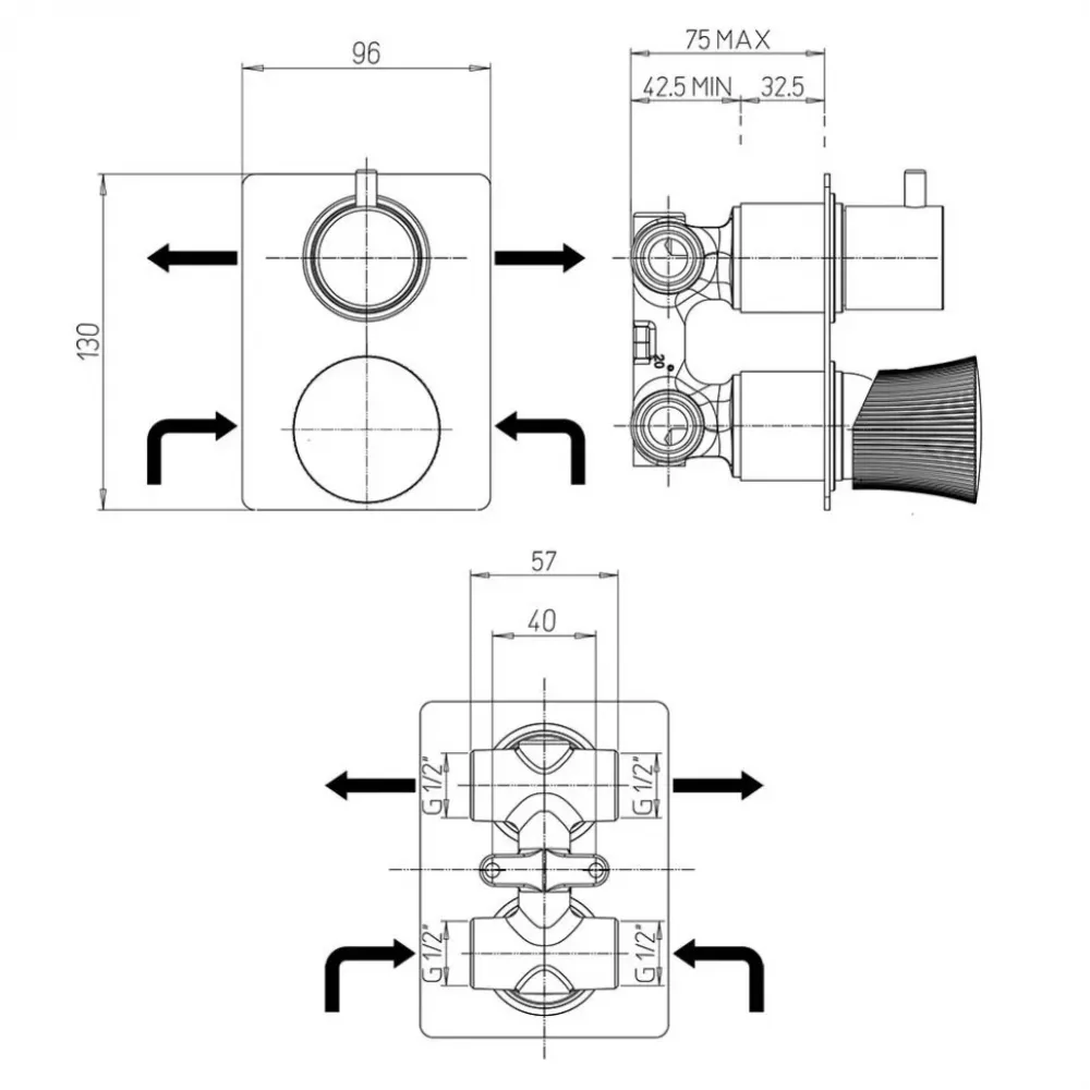Новая коллекция DOMUS от итальянского бренда PAINI отсылает нас к истории древних италийских родовых поместий. Встраиваемый смеситель для душа привлекает внимание необычной формой рычага. Данный смеситель позволяет распределить поток воды на два выхода и подключить несколько устройств, например, верхний душ и ручную лейку. Встраиваемые смесители PAINI поставляются в полном сборе - внутренняя и внешняя часть.