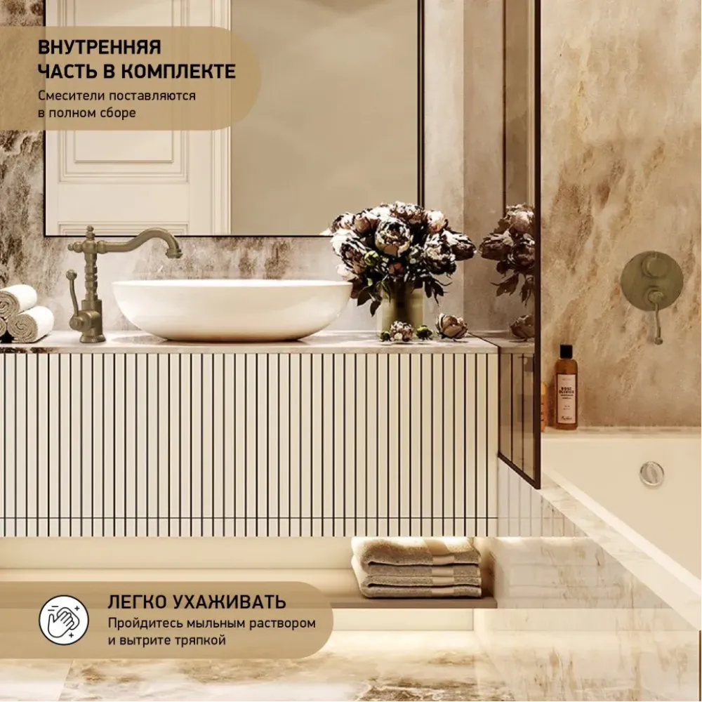 | Тип изделиясмеситель встраиваемый для ванны | Тип управления клавишейоднорычажный | Цветстарая бронза (F3) |