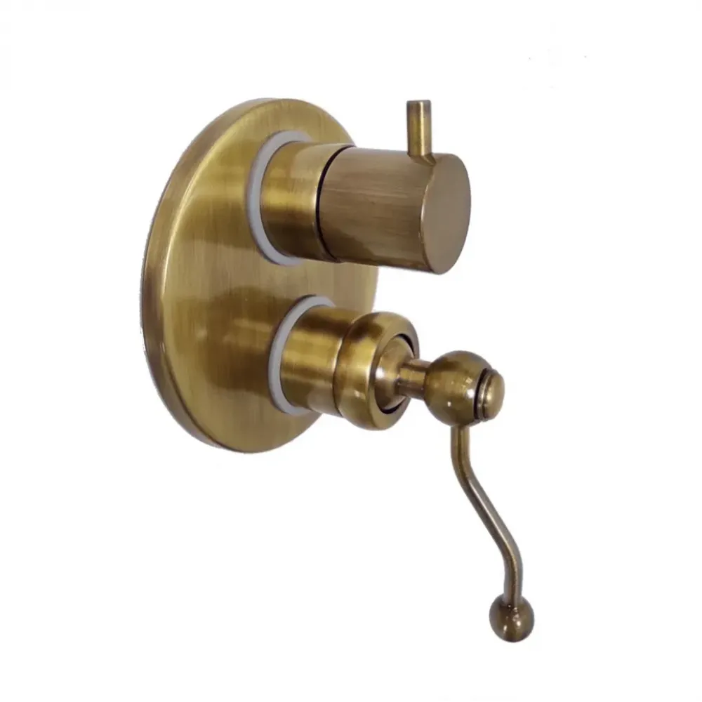 Встраиваемый смеситель для душа с дивертором внесет в ванную комнату элемент ретро, на виду останется только рычаг затейливой формы. Смеситель позволяет распределить поток воды на два выхода и подключить несколько устройств, например, верхний душ и ручную лейку. Встраиваемая сантехника PAINI поставляется в полном сборе - внутренняя и внешняя часть.