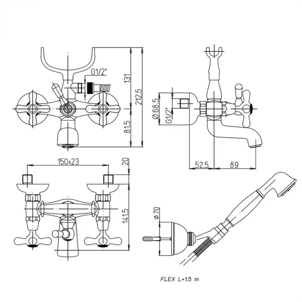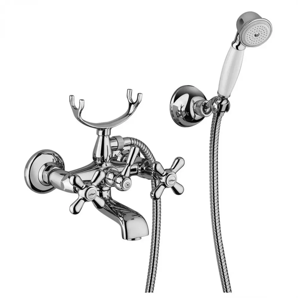 Обратите внимание на демократичную цену этого смесителя для ванной по сравнению с традиционно дорогими коллекциями под «винтаж». В комплекте поставляется шланг, лейка и крепеж для лейки. Это три.