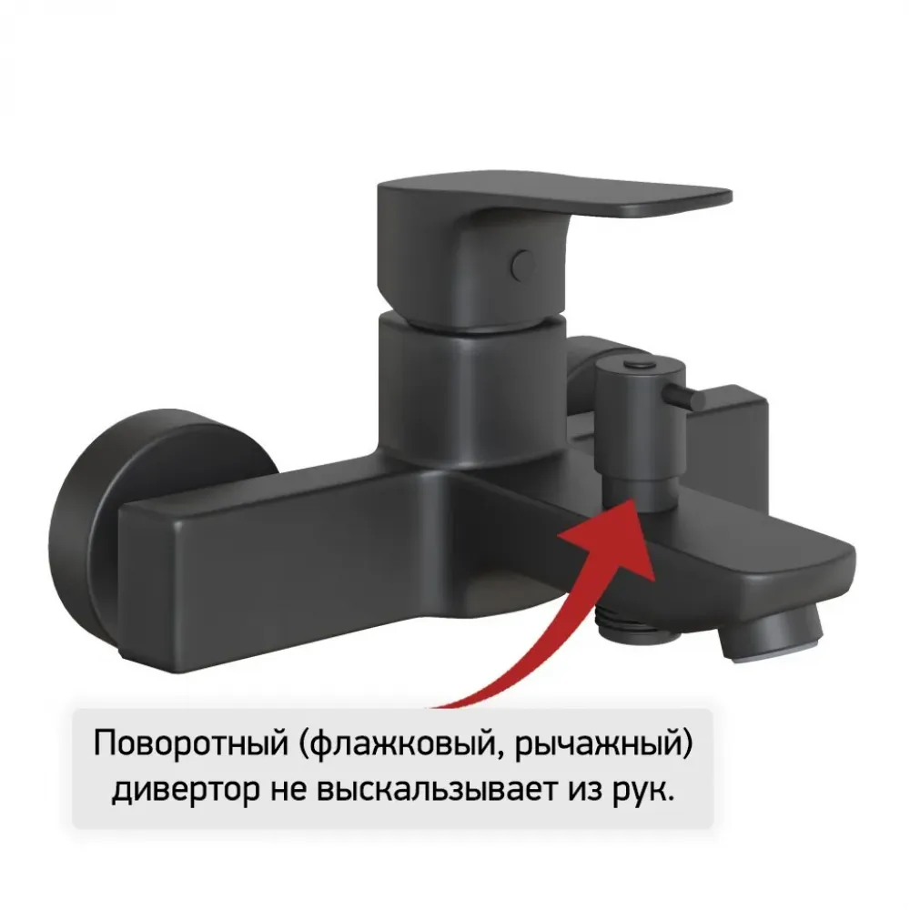 Поворотный (флажковый, рычажный) дивертор смесителя для ванной PAINI не среагирует на перепад давления воды и внезапно не переключится с душевой лейки на излив.