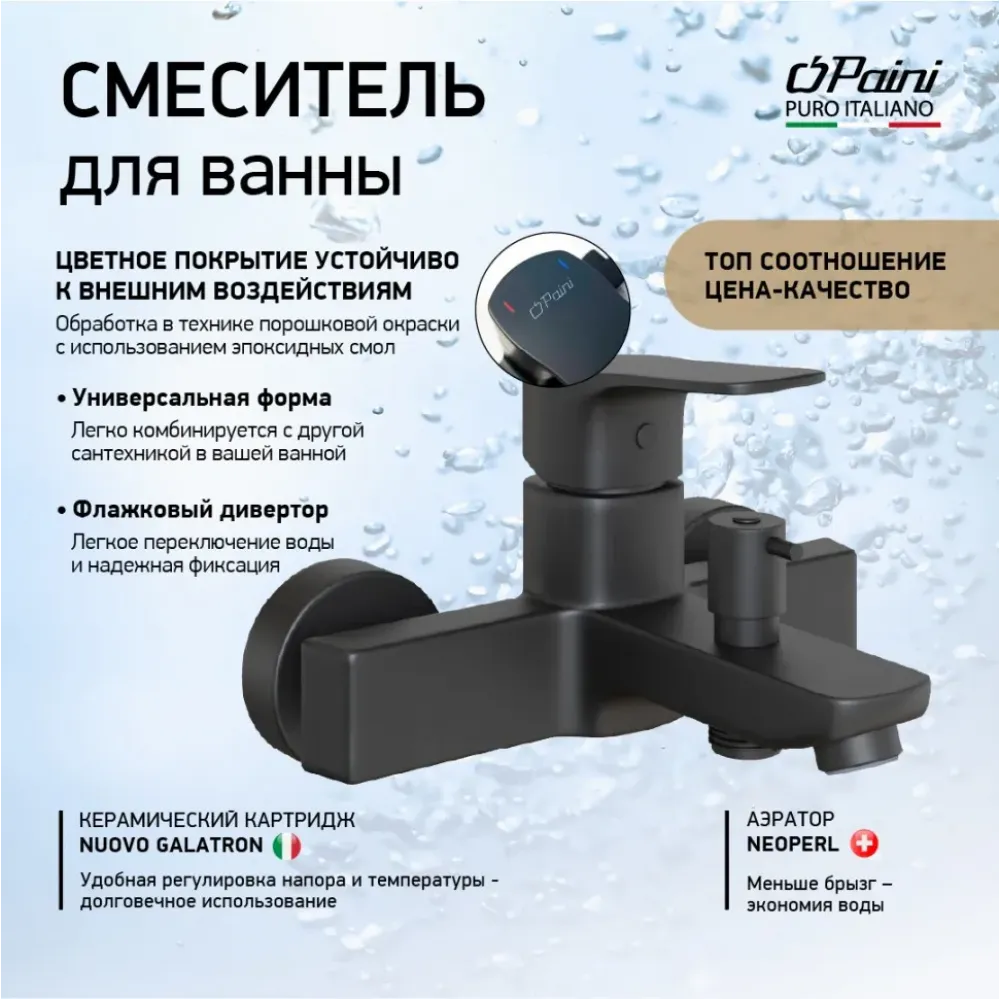 Однорычажный смеситель для ванны из новой коллекции VIVA STYLE от PAINI – четкие линии и современные технологии для вашего дома. Корпус смесителя сочетает в себе геометрию и изящество, что создает целостность формы.