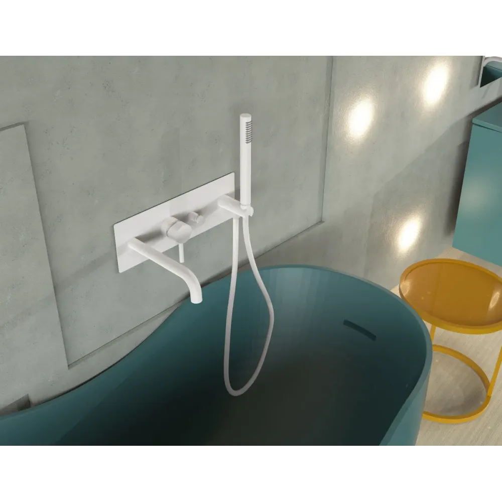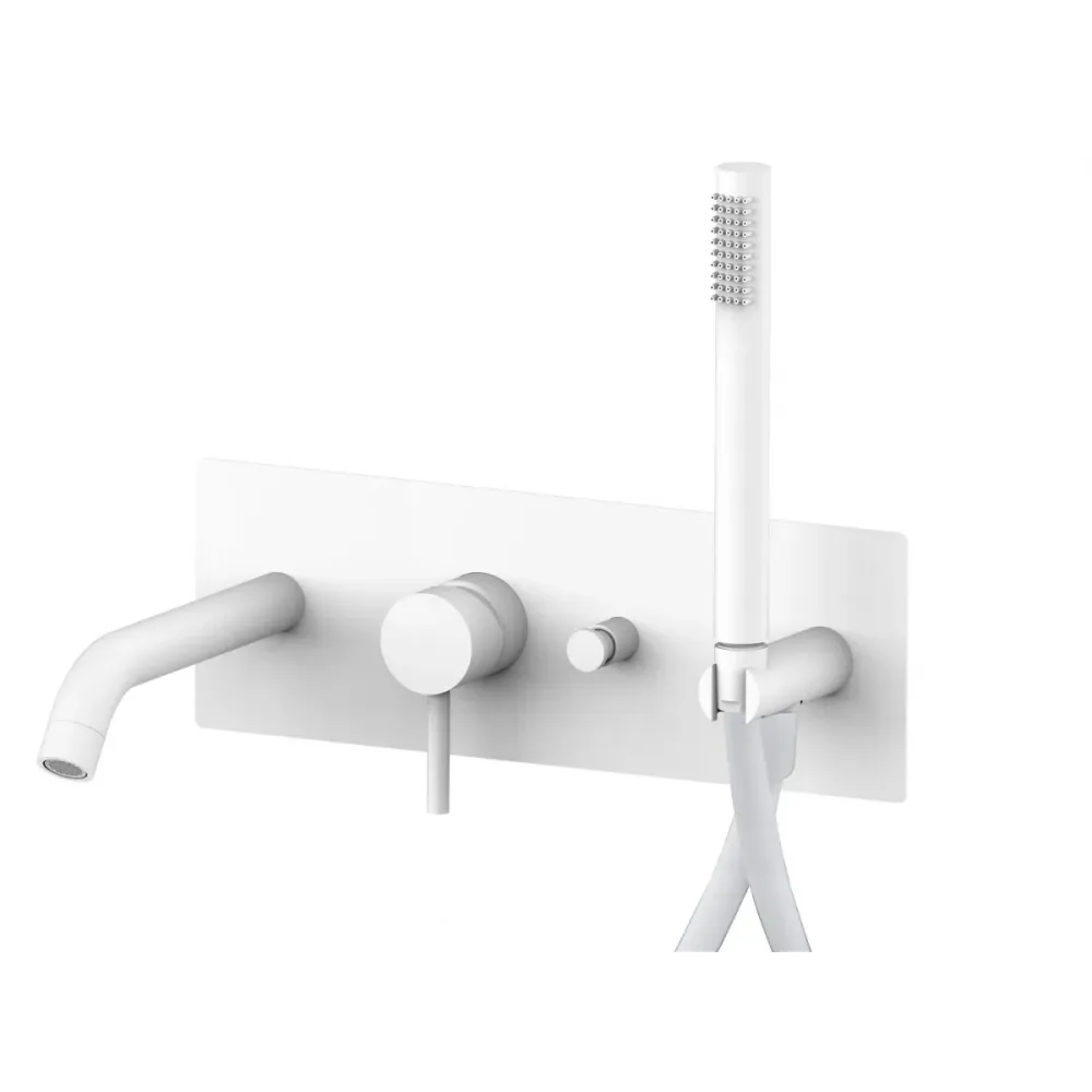 Смеситель для ванны с душем Paffoni Light LIG001BO встраиваемый на 2 выхода, накладка из нержавеющей стали 350х120мм, душевой гарнитур MASTER из металла, девиатор-кнопка, белый матовый
