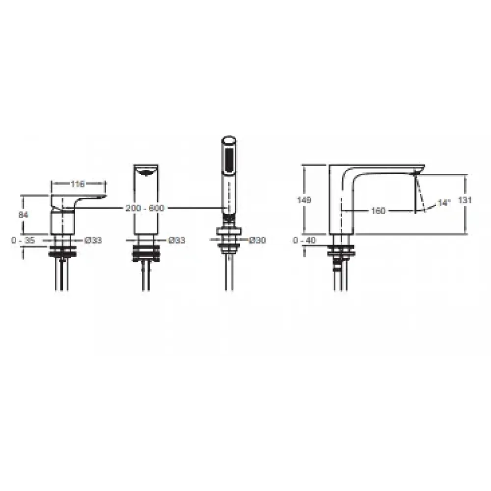 Технические характеристики Смеситель на борт ванны Aleo 2 режима лейки, на 3 отв. E72292-CP Jacob Delafon