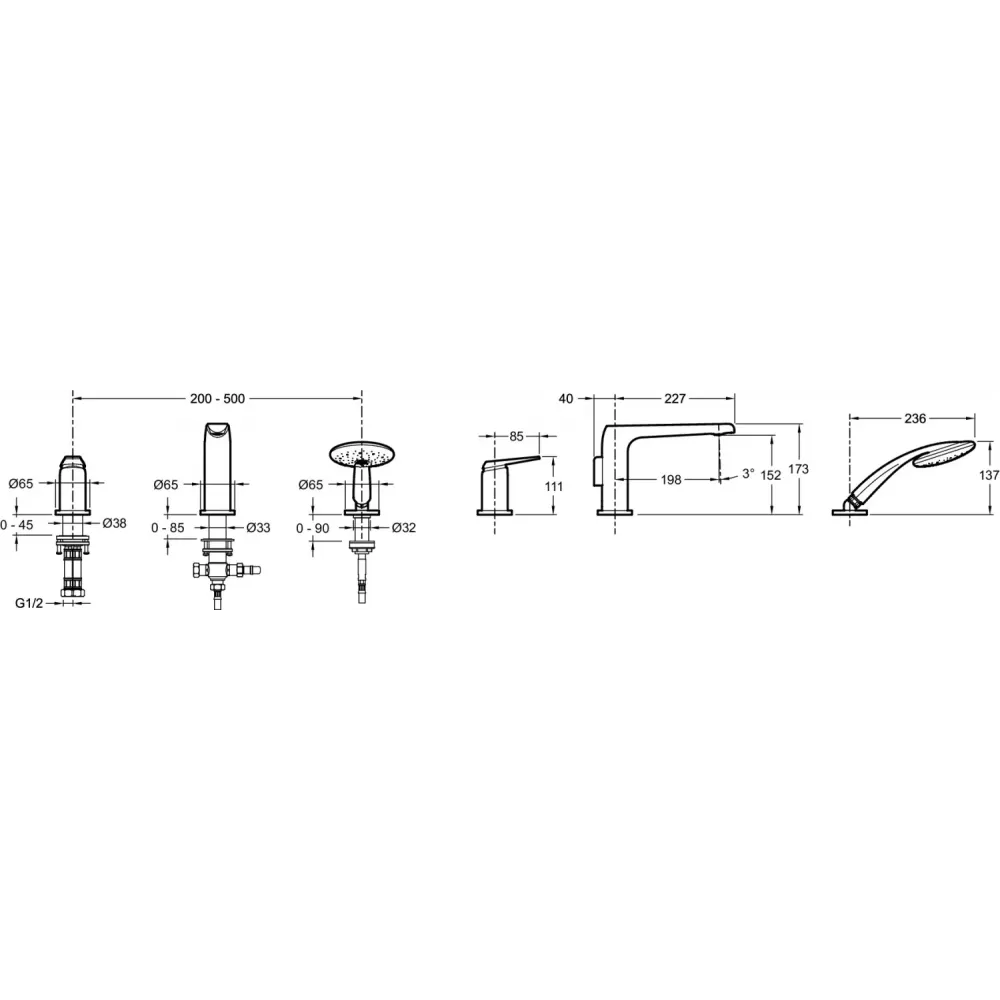 Технические характеристики Смеситель на борт ванны Avid полированный, лейка в комплекте, на 3 отв., никель E97360-BN Jacob Delafon