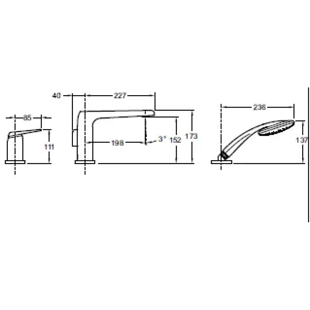 Однорычажный смеситель для ванны/душа на 3 отверстия, устанавливаемый на деку