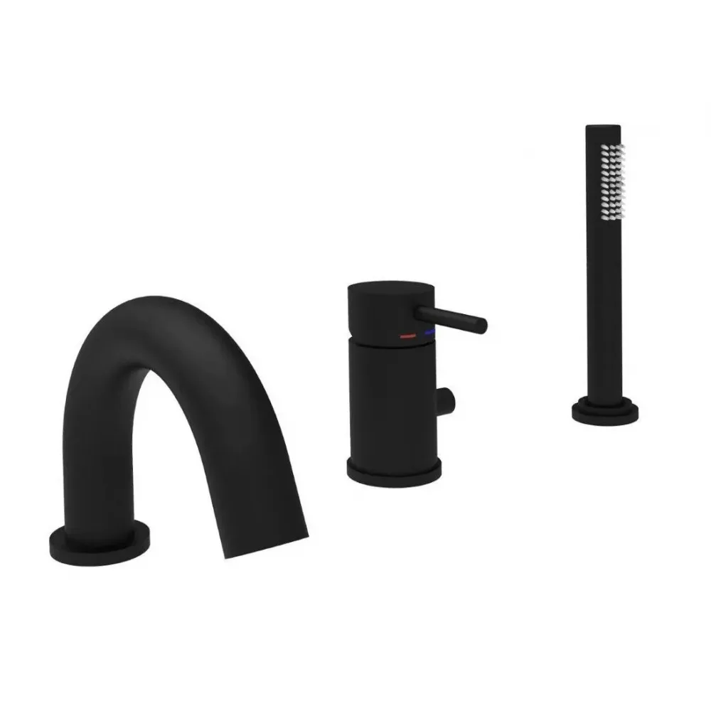 Смеситель на борт ванны с душем Paffoni Light LIG047NO на 3 отверстия с увеличенным расходом MAX FLOW, с душем MASTER, с комплеком подключений, черный матовый