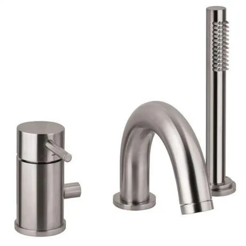 Смеситель на борт ванны с душем Paffoni Light LIG047ST на 3 отверстия с увеличенным расходом MAX FLOW, с душем MASTER, с комплеком подключений, Steel looking