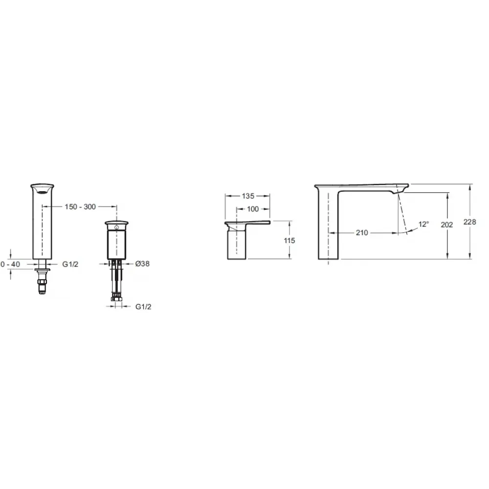 Смеситель для ванны на два отверстия, устанавливаемый на деку.