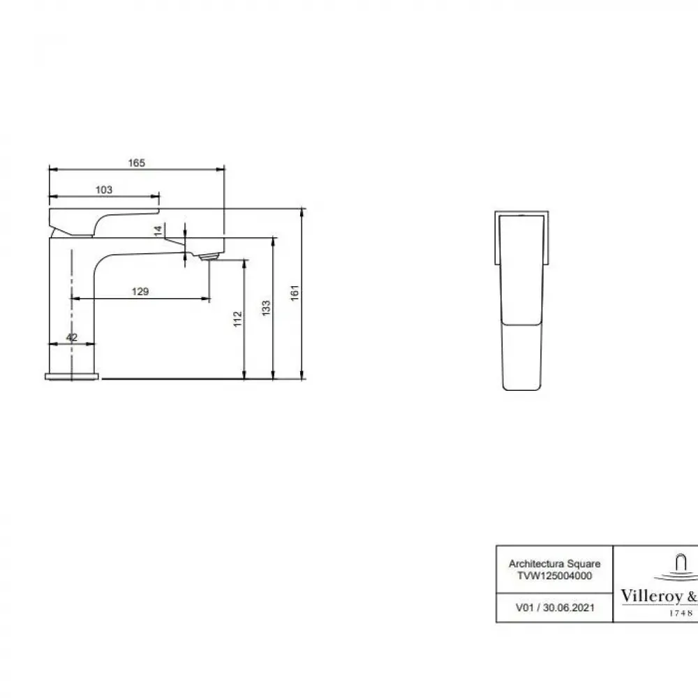 Смеситель Villeroy & Boch Architectura Square TVW125004000K5 для раковины, черный матовый