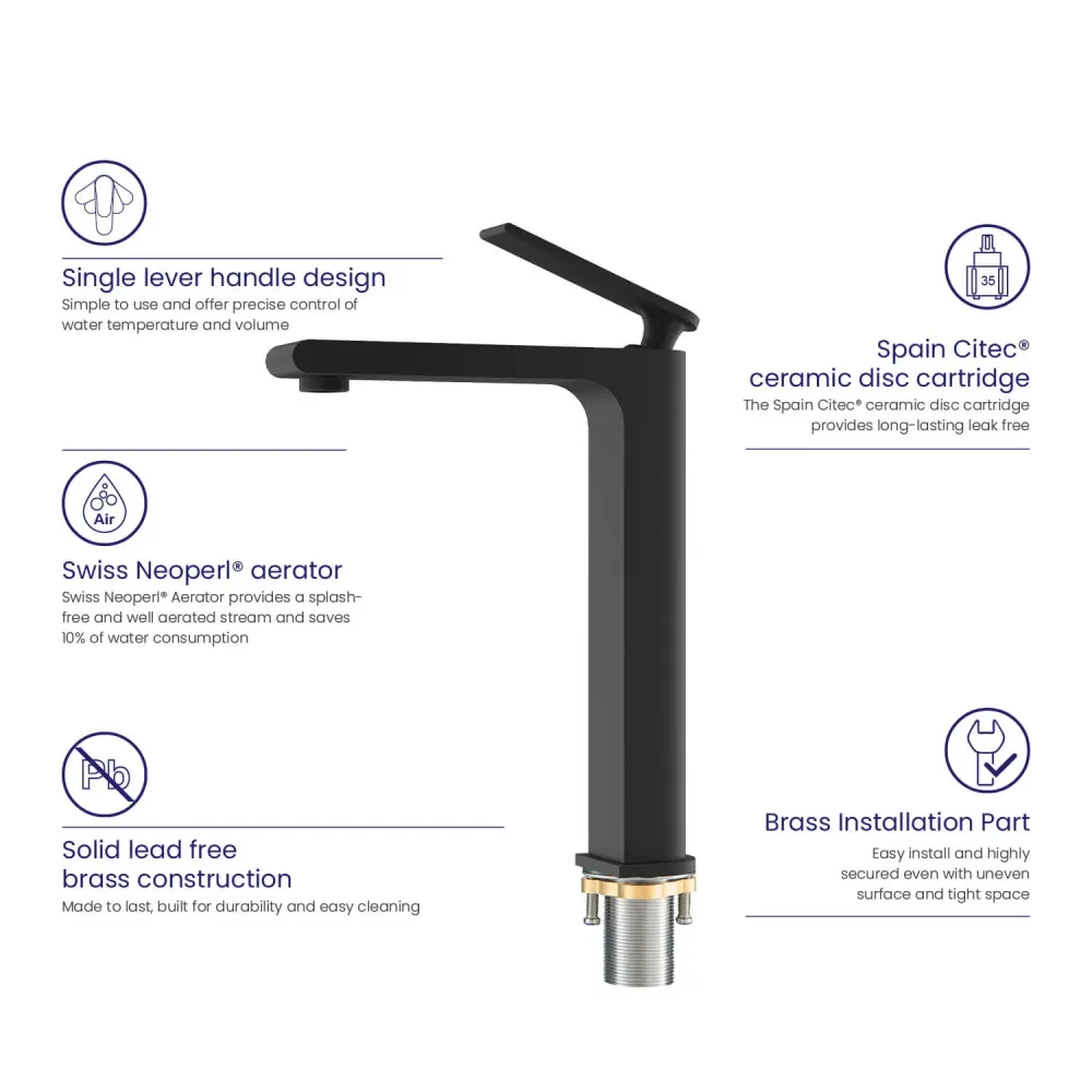 | Тип смесителяДля раковины-чаши, Для раковины | УправлениеОднорычажное | ЦветЧерный |