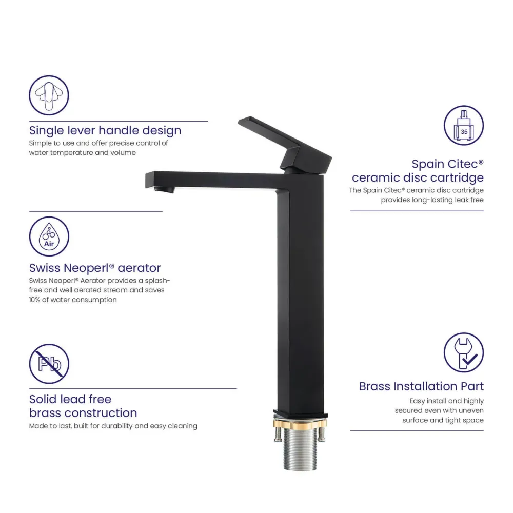 | Тип смесителяДля раковины-чаши, Для раковины | УправлениеОднорычажное | ЦветЧерный |