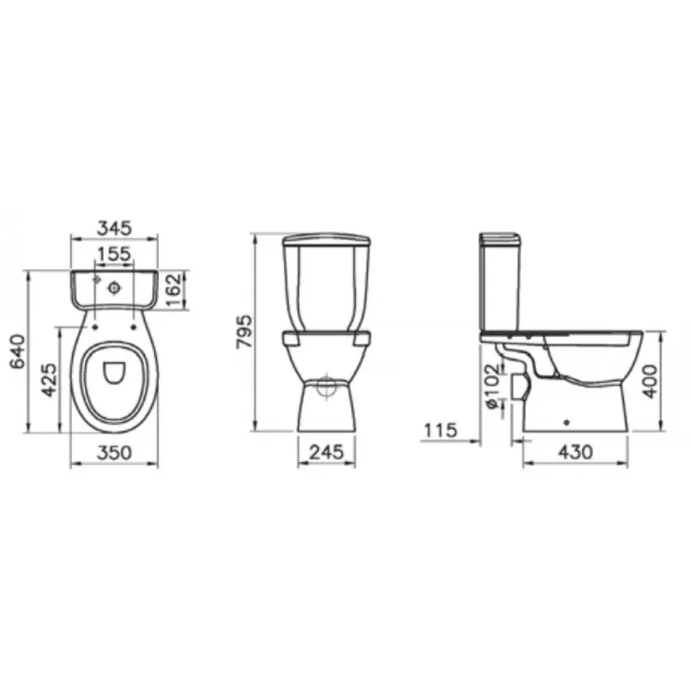 Технические характеристики Унитаз-компакт July 35х64 см, с креплением, нижняя подводка, горизонтальный выпуск, без сиденья E24541RU-00 Jacob Delafon
