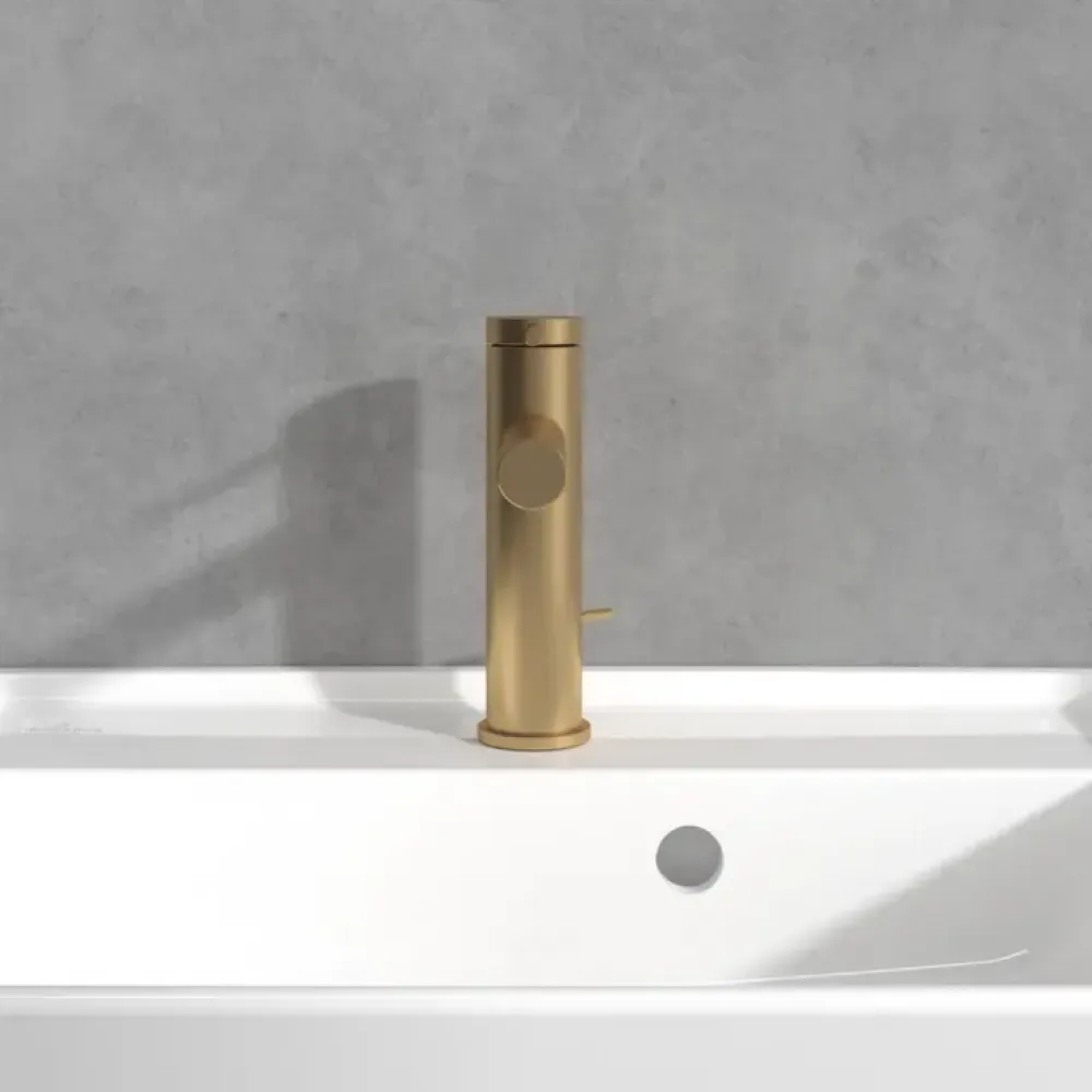 Villeroy & Boch Loop & Friends Смеситель для раковины однорычажный с комплектом слива со стяжкой, Золото сатинированное