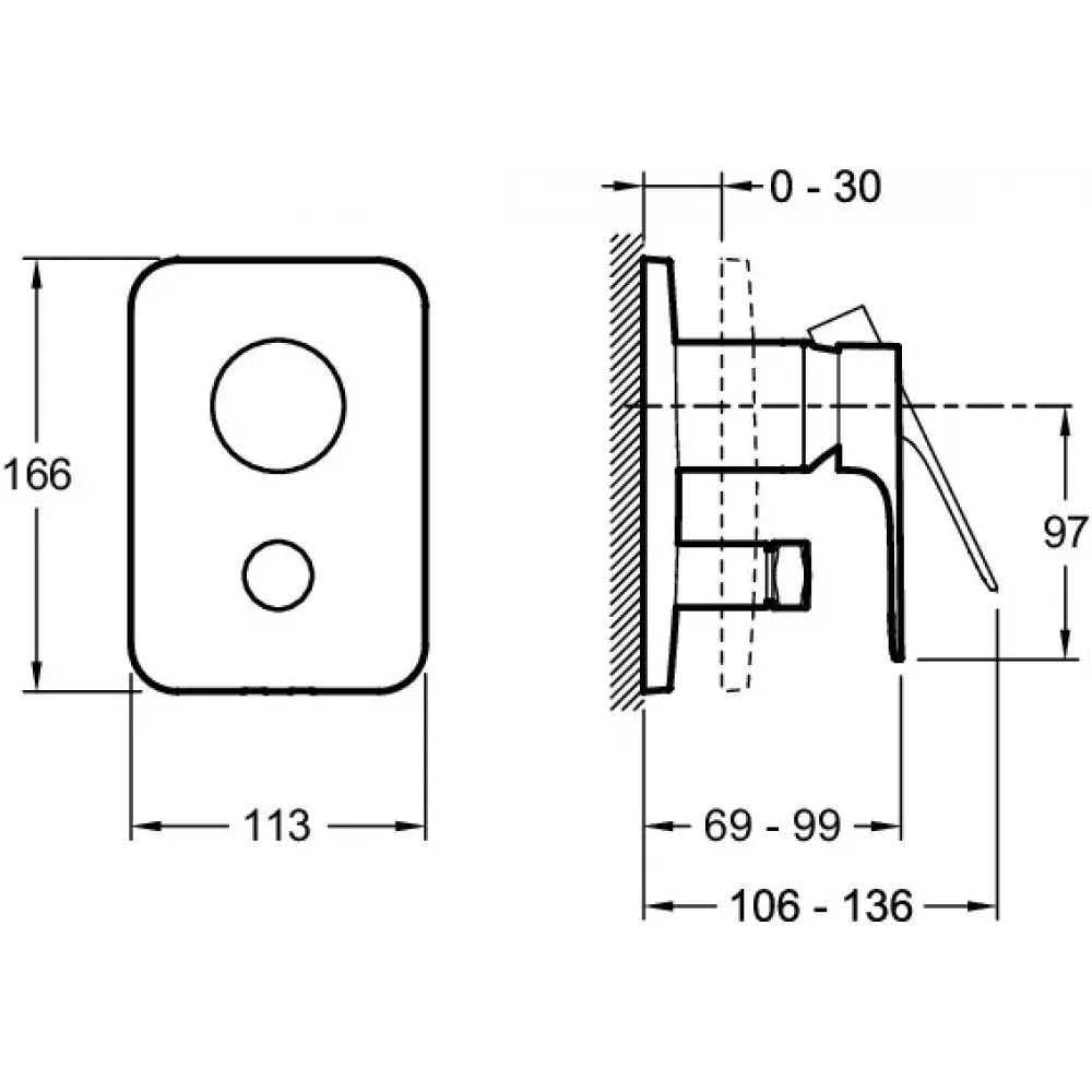 Технические характеристики Встраиваемый в стену смеситель без излива Aleo+ 2 функции E98718RU-CP Jacob Delafon