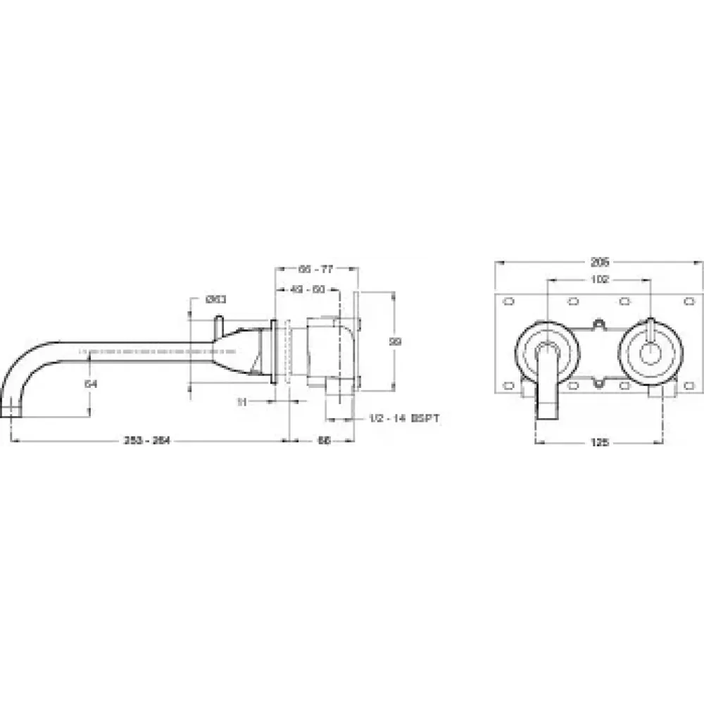 Технические характеристики Встраиваемый в стену смеситель для раковины Zen E72216-CP Jacob Delafon